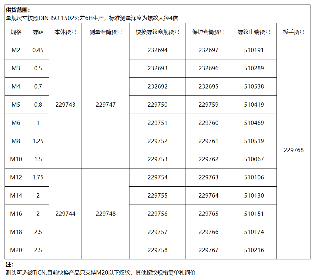 螺(luó)紋止端快換測頭4個(gè),M5、M6、M8、M10